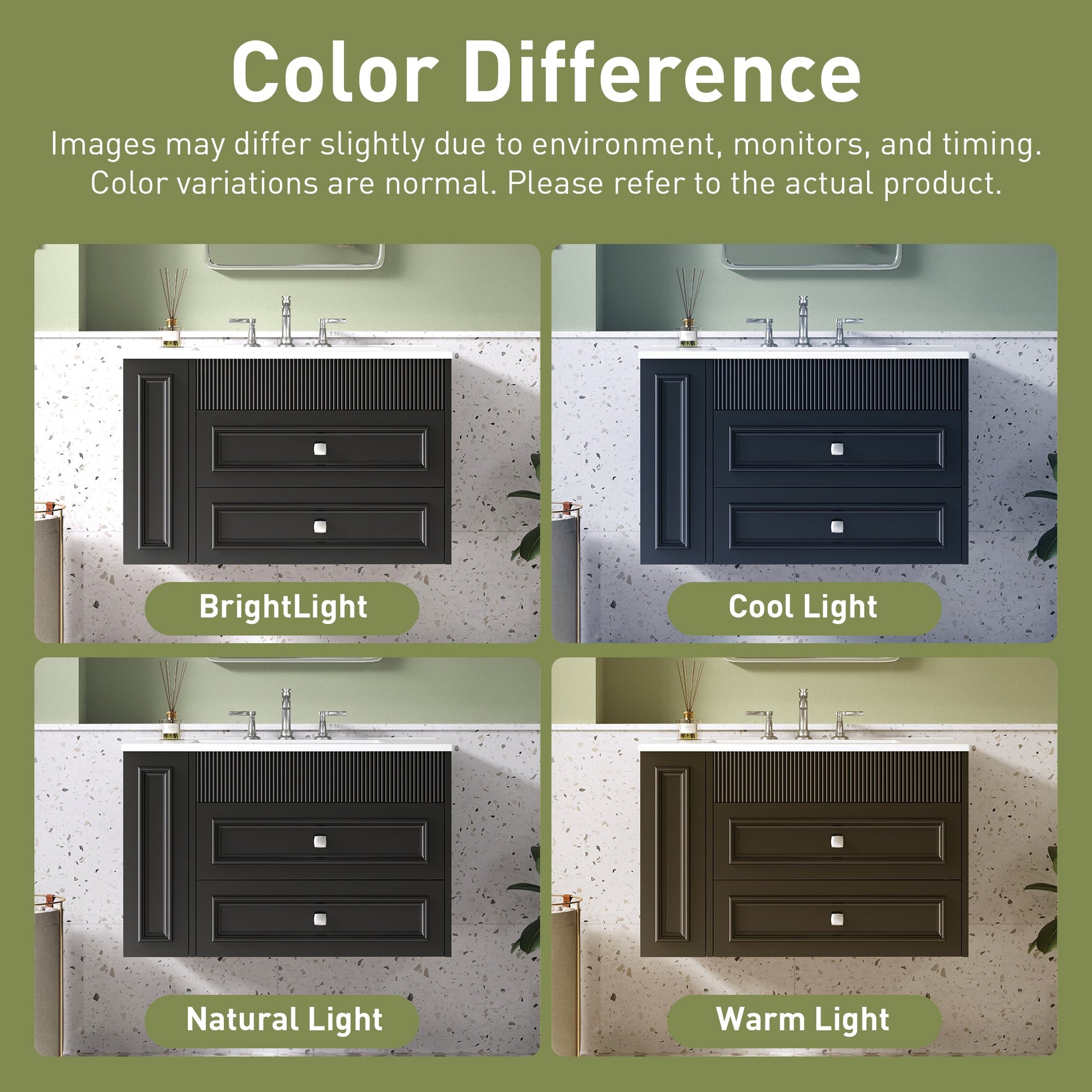 - Wall Mounted Bathroom Vanity:Because the floating bathroom cabinet is wall mounted, there are no legs or other parts around to clean. The underside of the vanity will also be easier to clean. This makes it easier to keep the bathroom vanity clean and tidy. Also, it takes up less floor space than traditional freestanding bathroom cabinet and is more space-saving.