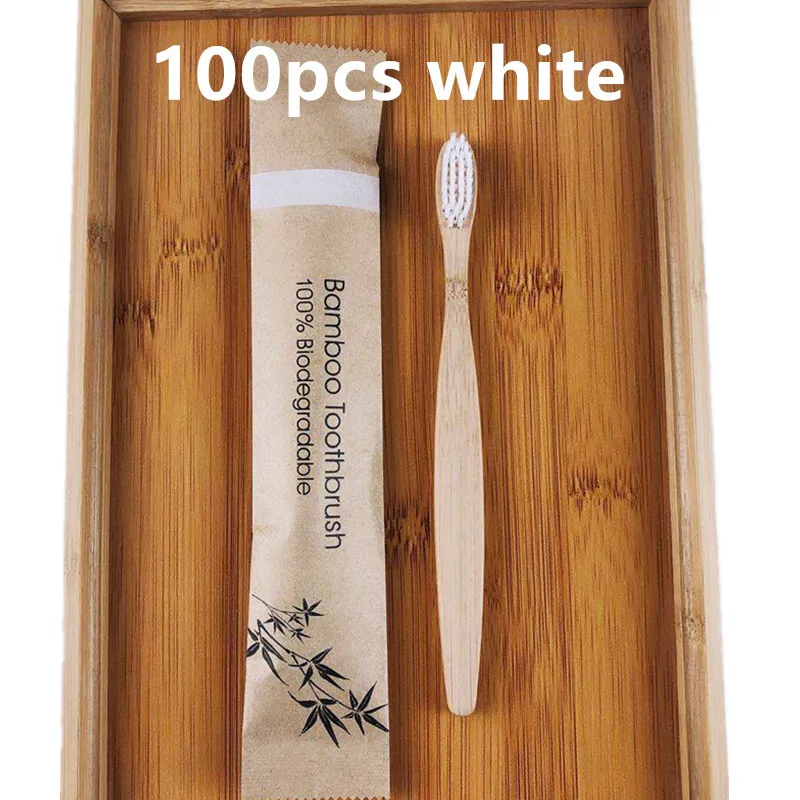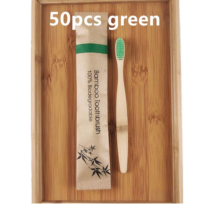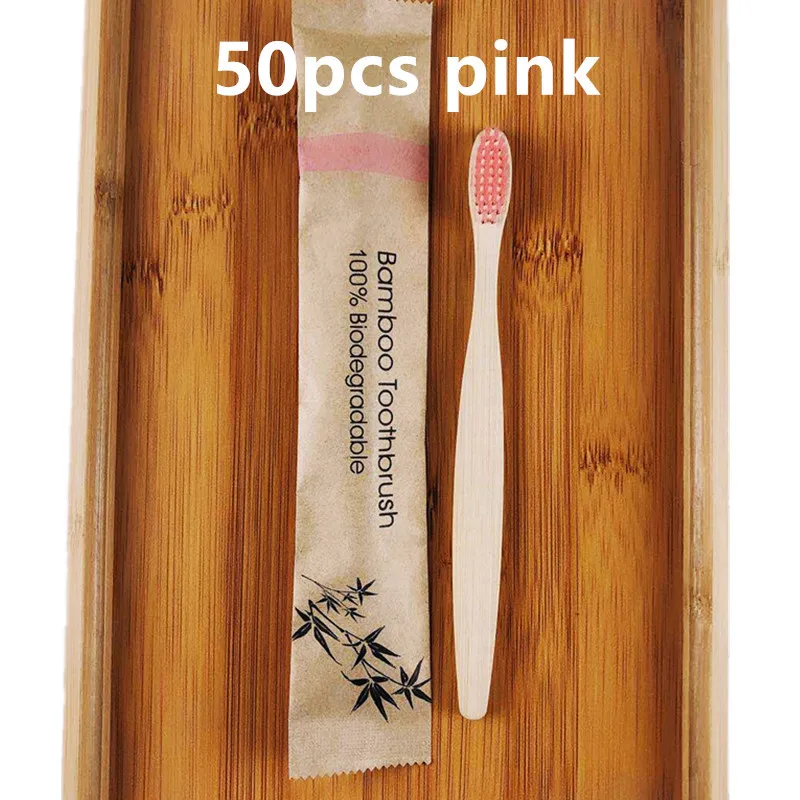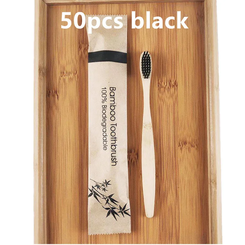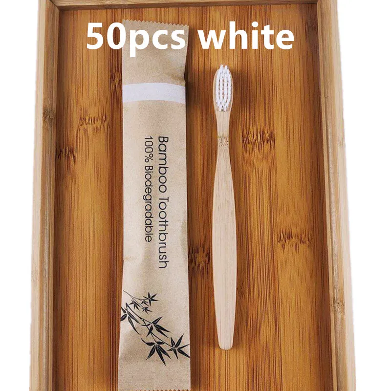 50 / 100 Pcs Customized Laser Engraving Logo Bamboo Toothbrushes Portable Eco Friendly Wooden Tooth Brush for Adults Children