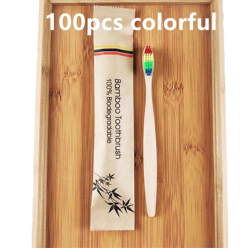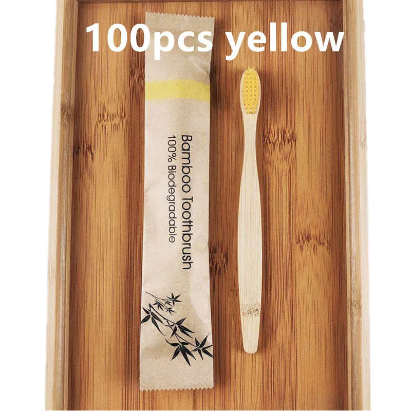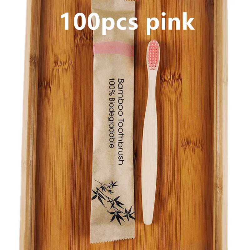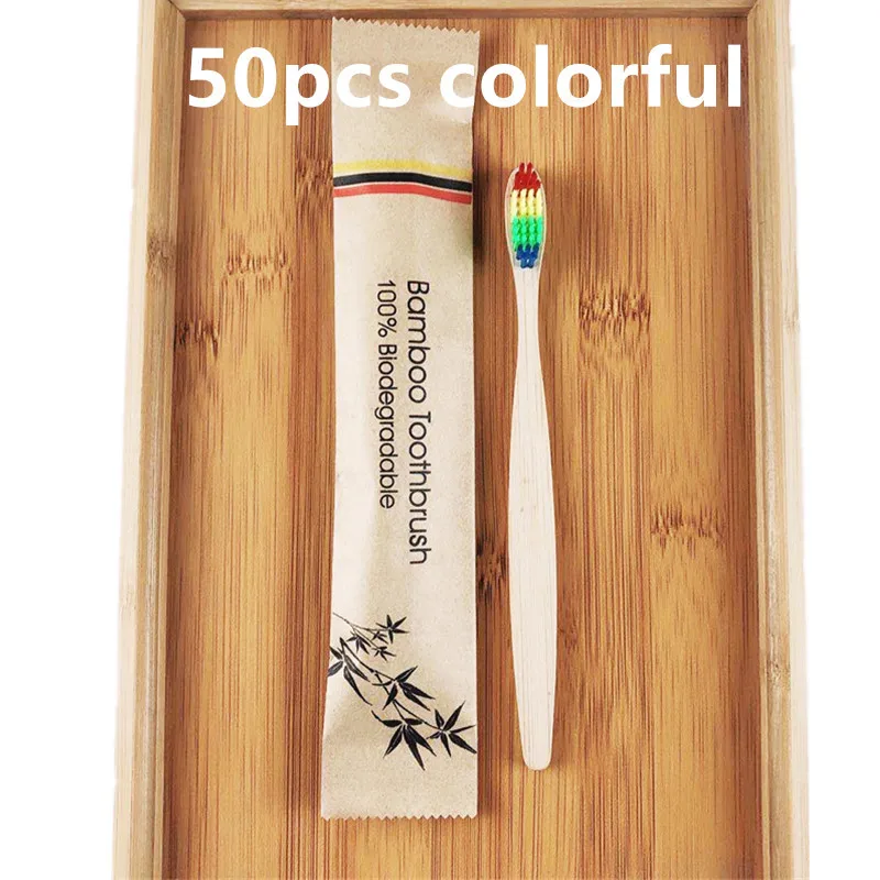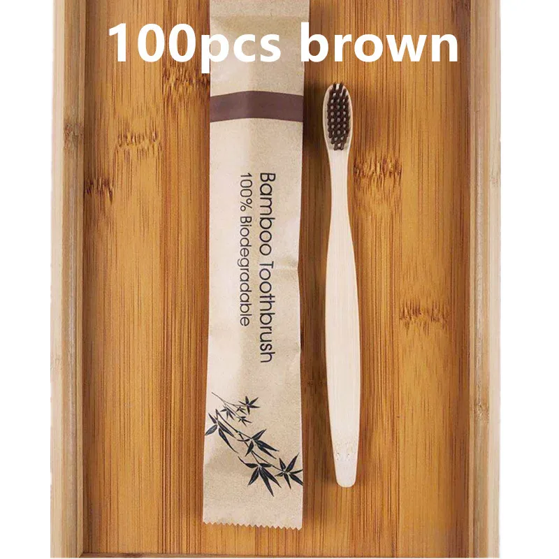 50 / 100 Pcs Customized Laser Engraving Logo Bamboo Toothbrushes Portable Eco Friendly Wooden Tooth Brush for Adults Children