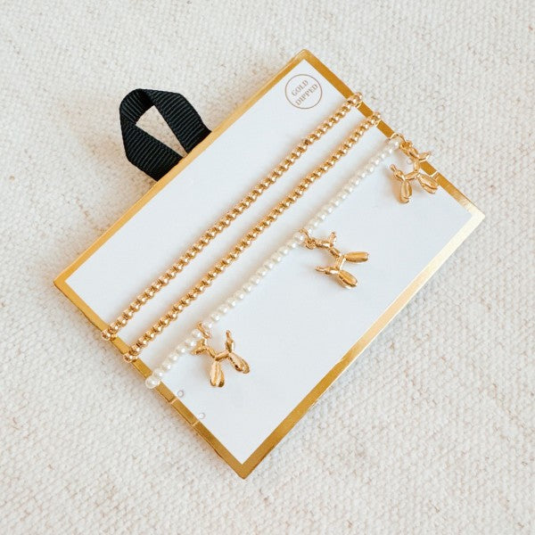 Add a touch of fun with the Balloon Puppy Stretch Bracelet Set Of 3. This adorable set features whimsical balloon puppy charms paired with stylish beads, making it the perfect accessory to elevate any outfit. Ideal for adding charm and creativity to your everyday look.