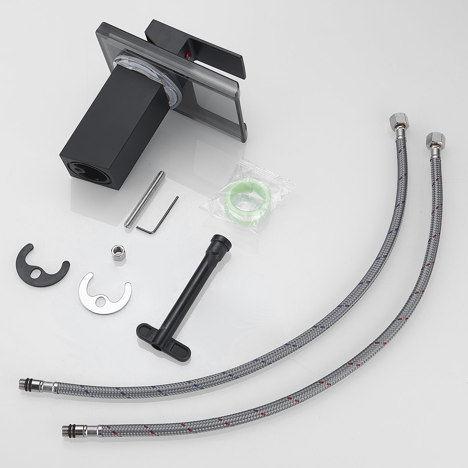 Bathroom Sink Faucet LED Light 3 Colors Changing Waterfall Glass Spout