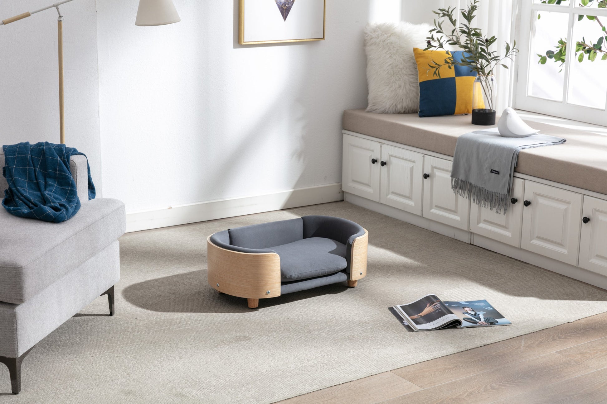 Scandinavian style Elevated Dog Bed Pet Sofa With Solid Wood legs and